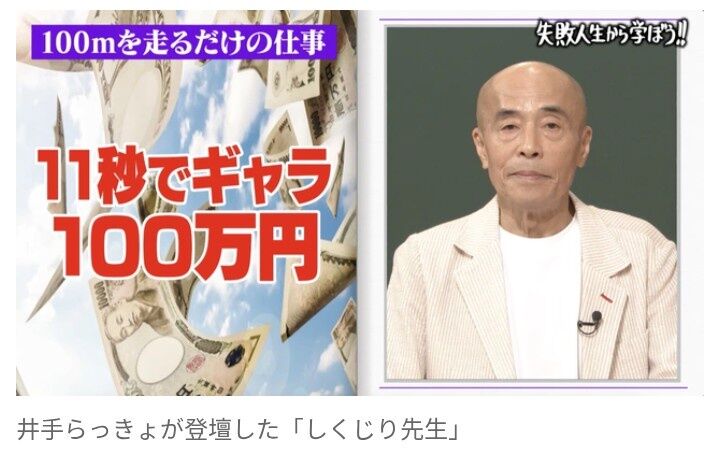 そんな中、バブル期の営業事情も明かされ、スタジオに衝撃が走る場面も。企業の運動会での営業について「『サプライズゲスト、井手らっきょさんです!』と紹介されて、100メートルを11秒で走ってゴールしたら、それで終わり」と振り返った先生。